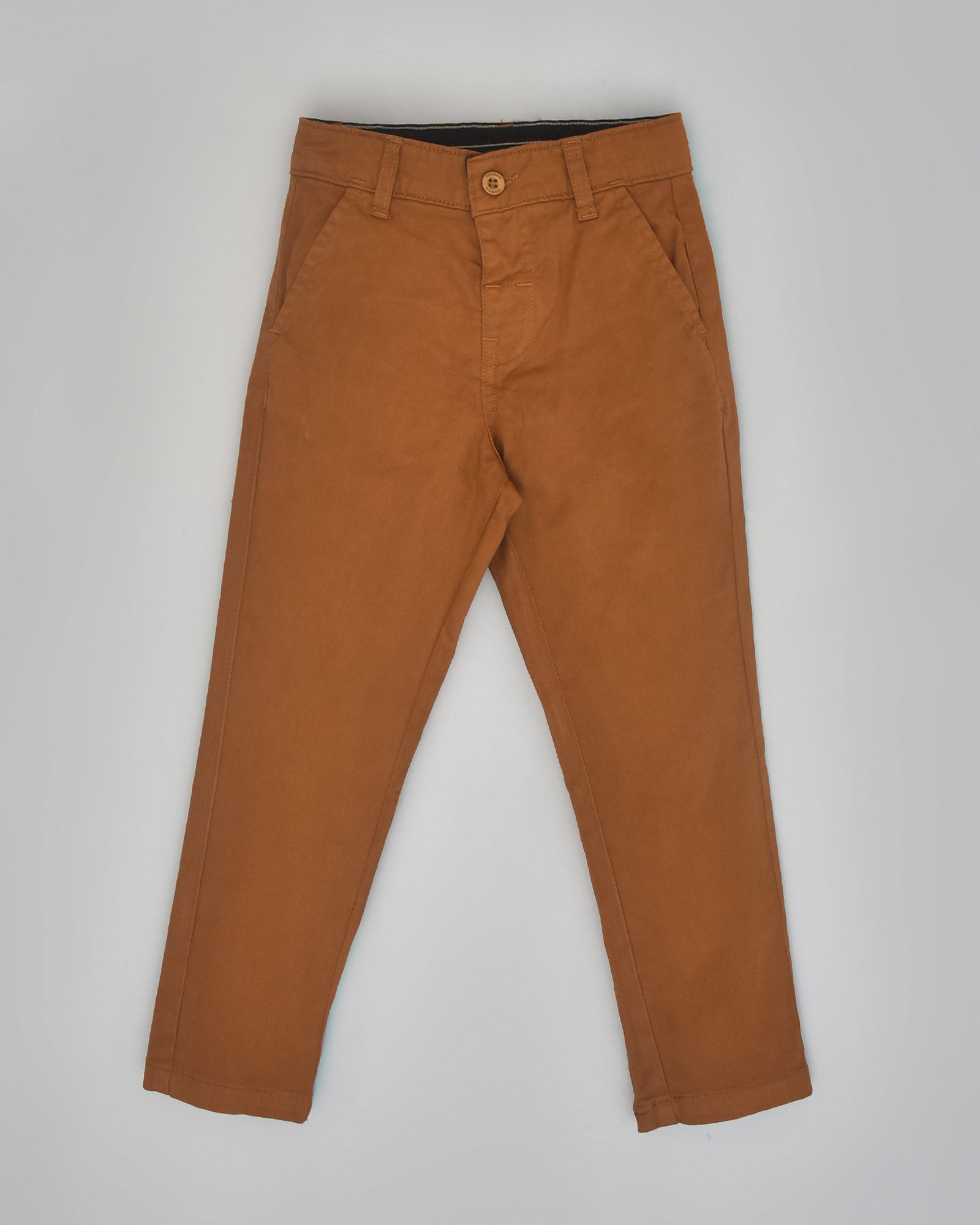 Youmaa Boys -100% Cotton Chinos -Fixed Waist Band - Elasticated -Pockets -RegularLength- Fit- Micro Fibre Cloud Wash Softness-Khakhi