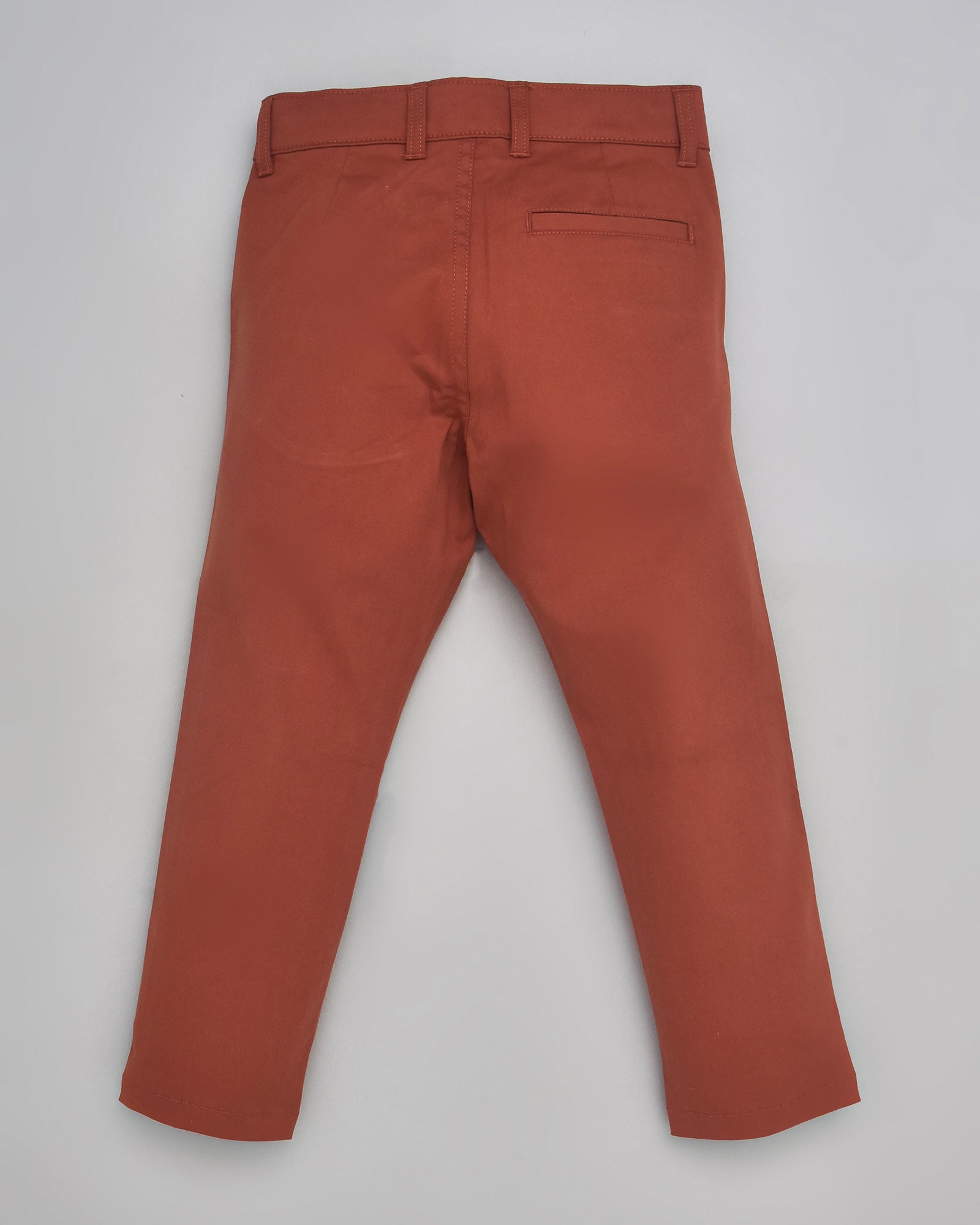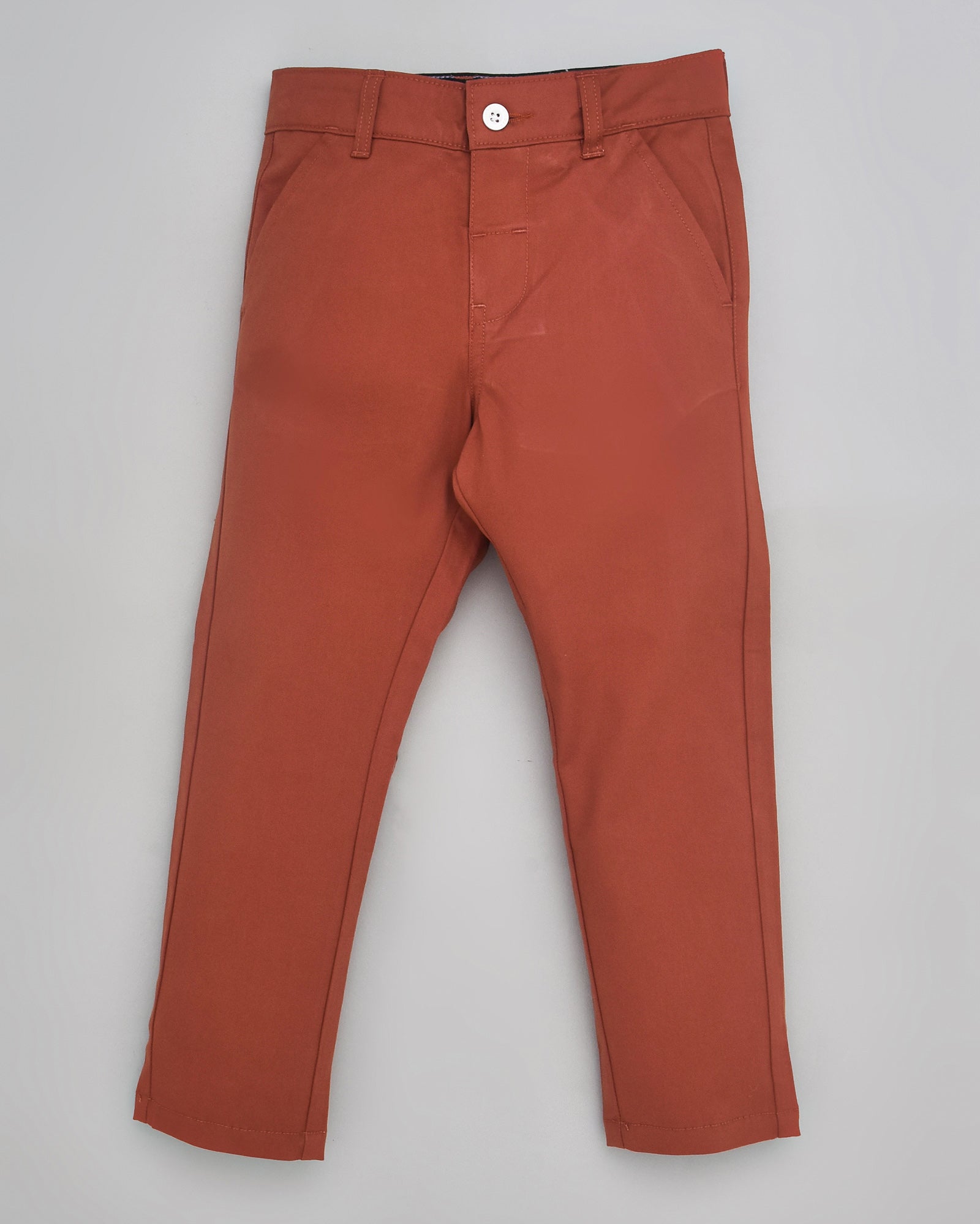 Youmaa Boys -100% Cotton Chinos -Fixed Waist Band - Elasticated -Pockets -RegularLength- Fit- Micro Fibre Cloud Wash Softness-Rust