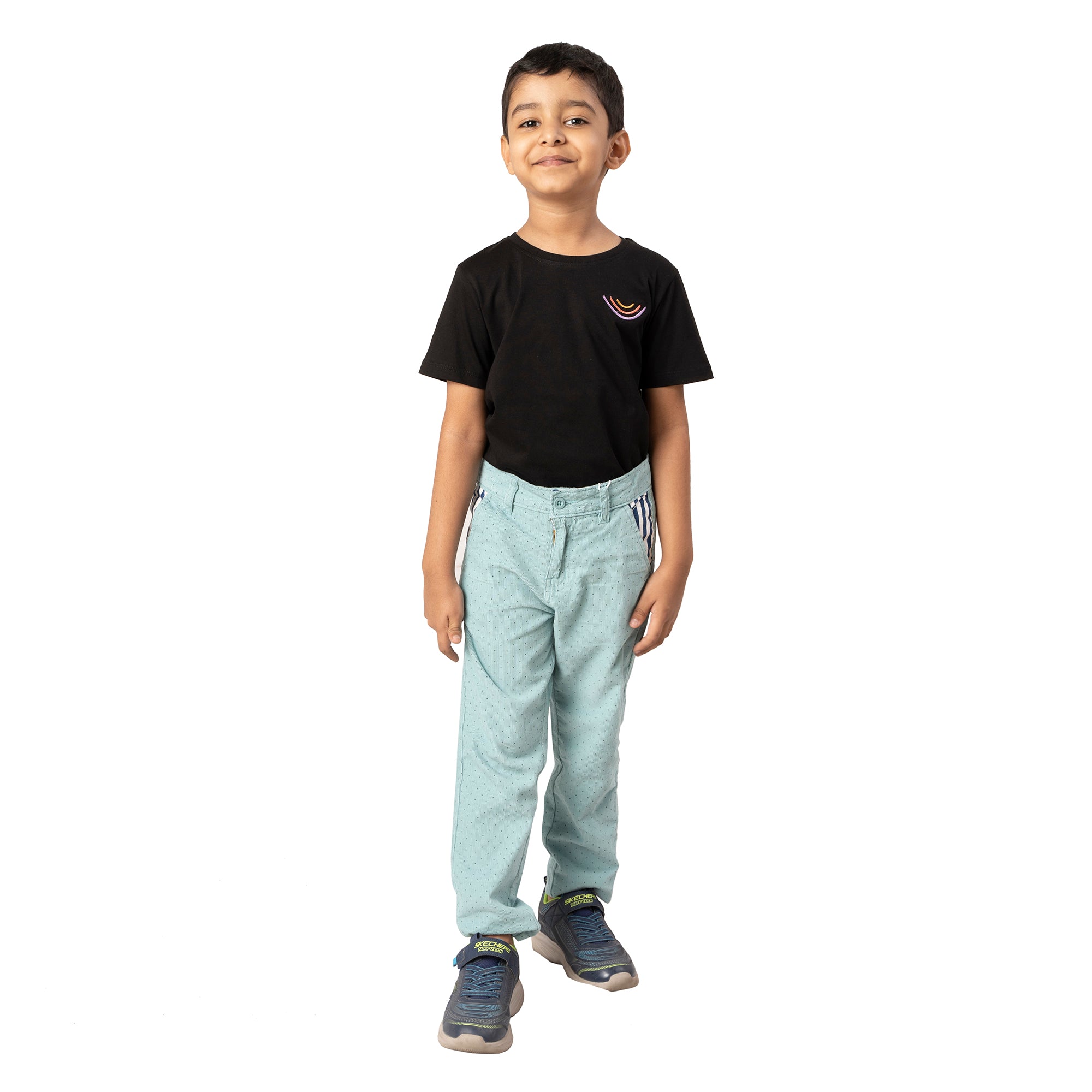 Youmaa Boys -100% Cotton coudroy Textured Chinos -Fixed Waist Band - Elasticated -Pockets -RegularLength- Fit- Micro Fibre Cloud Wash Softness-Blue