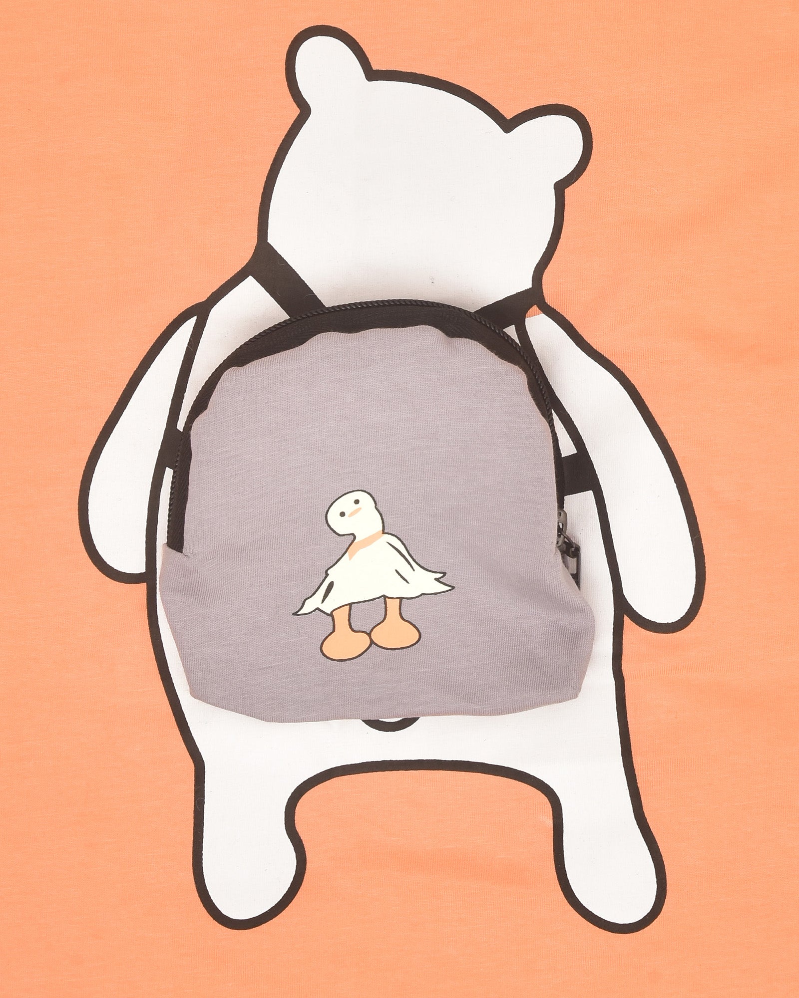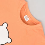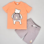 Youmaa Boys -100% Cotton Knits Cord Set 2pc- Bunny TShirt Zipper Pocket on Chest -Pastel Shorts Pockets -Regular Length- Micro Fibre Cloud Wash Softness-Peach