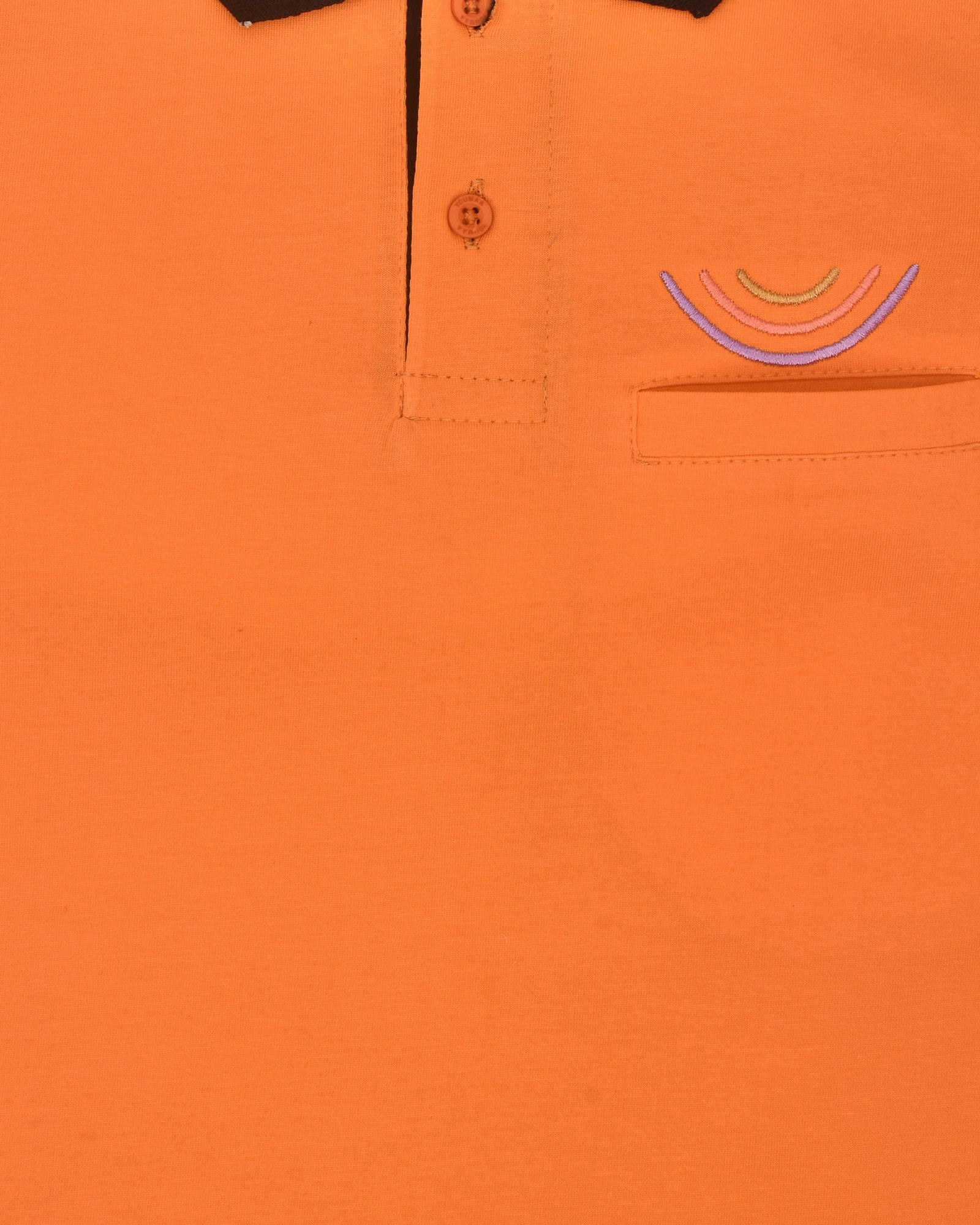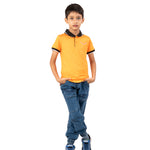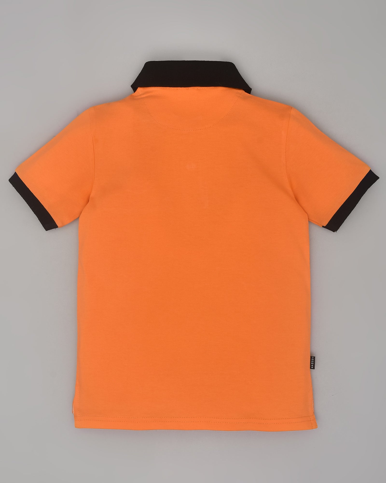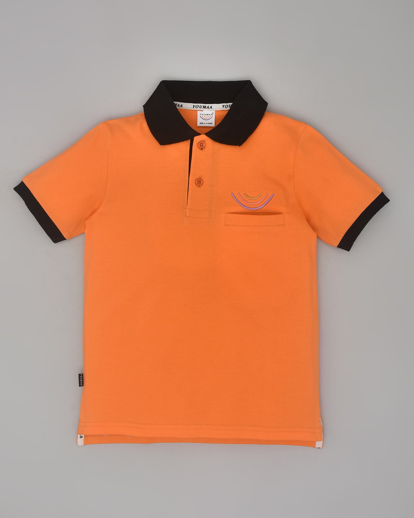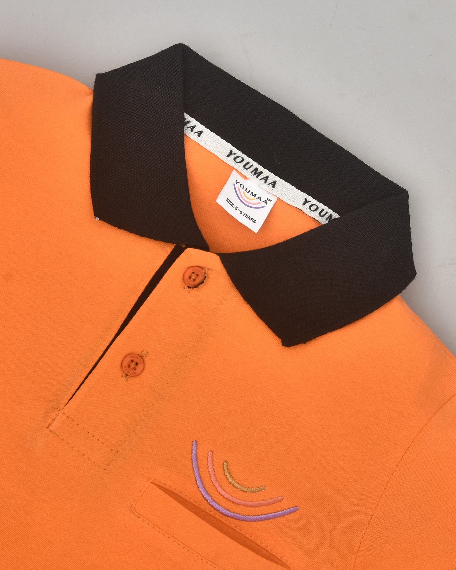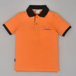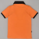 Youmaa Boys -100% Cotton Knits Polo Player Tshirt - Contrast Collared Half Sleeves-Chest Rainbow Embroidery -Regular Length- Micro Fibre Cloud Wash Softness-Orange