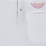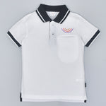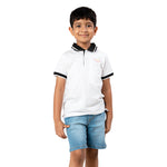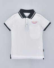 Youmaa Boys -100% Cotton Knits Polo Player Tshirt - Contrast Collared Half Sleeves-Chest Rainbow Embroidery -Regular Length- Micro Fibre Cloud Wash Softness-White