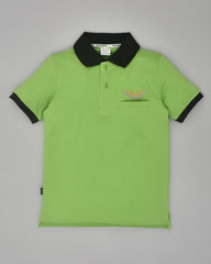 Youmaa Boys -100% Cotton Knits Polo Player Tshirt - Contrast Collared Half Sleeves-Chest Rainbow Embroidery -Regular Length- Micro Fibre Cloud Wash Softness-Blue -