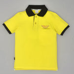Youmaa Boys -100% Cotton Knits Polo Player Tshirt - Contrast Collared Half Sleeves-Chest Rainbow Embroidery -Regular Length- Micro Fibre Cloud Wash Softness-Yellow
