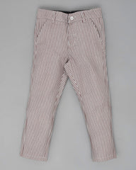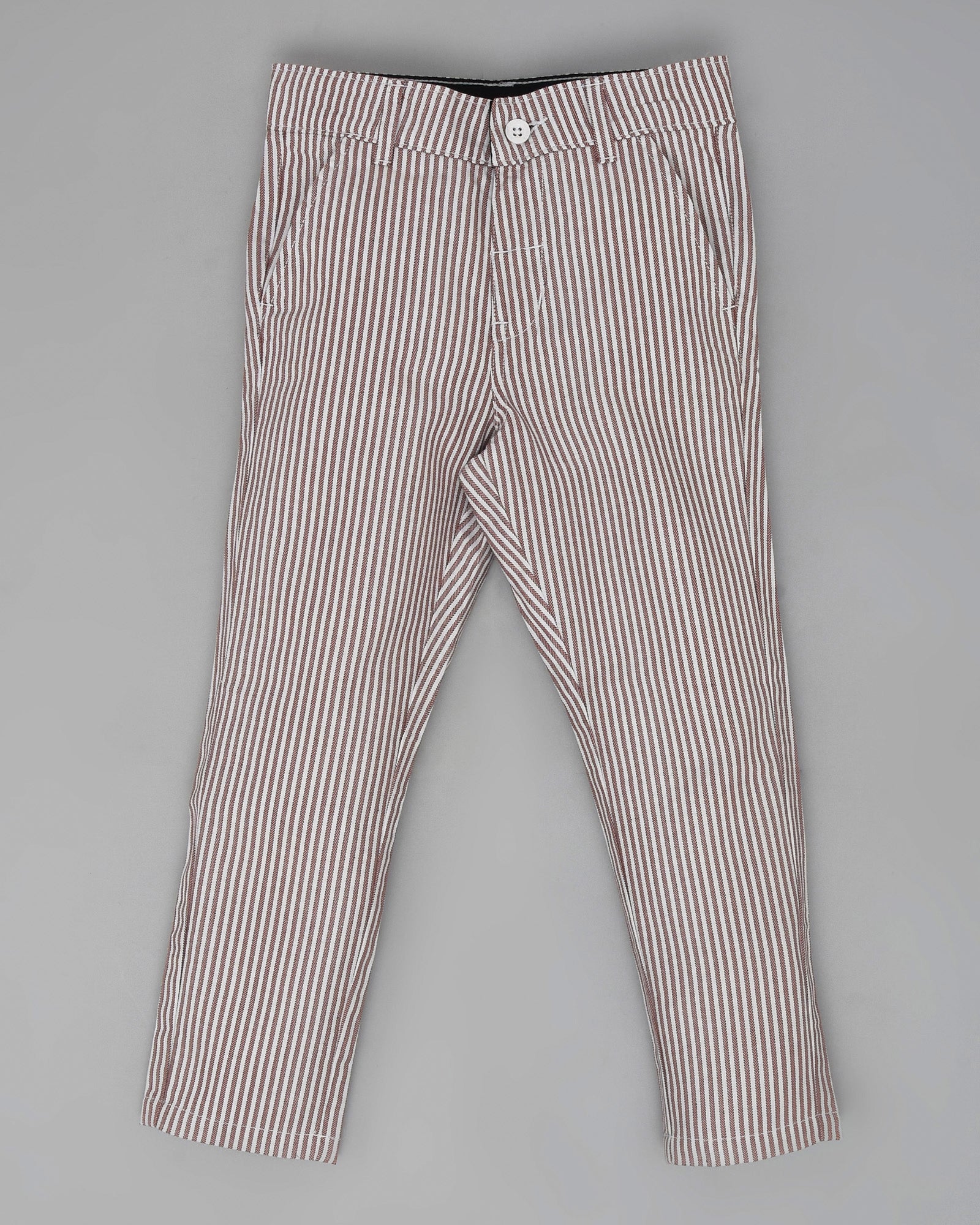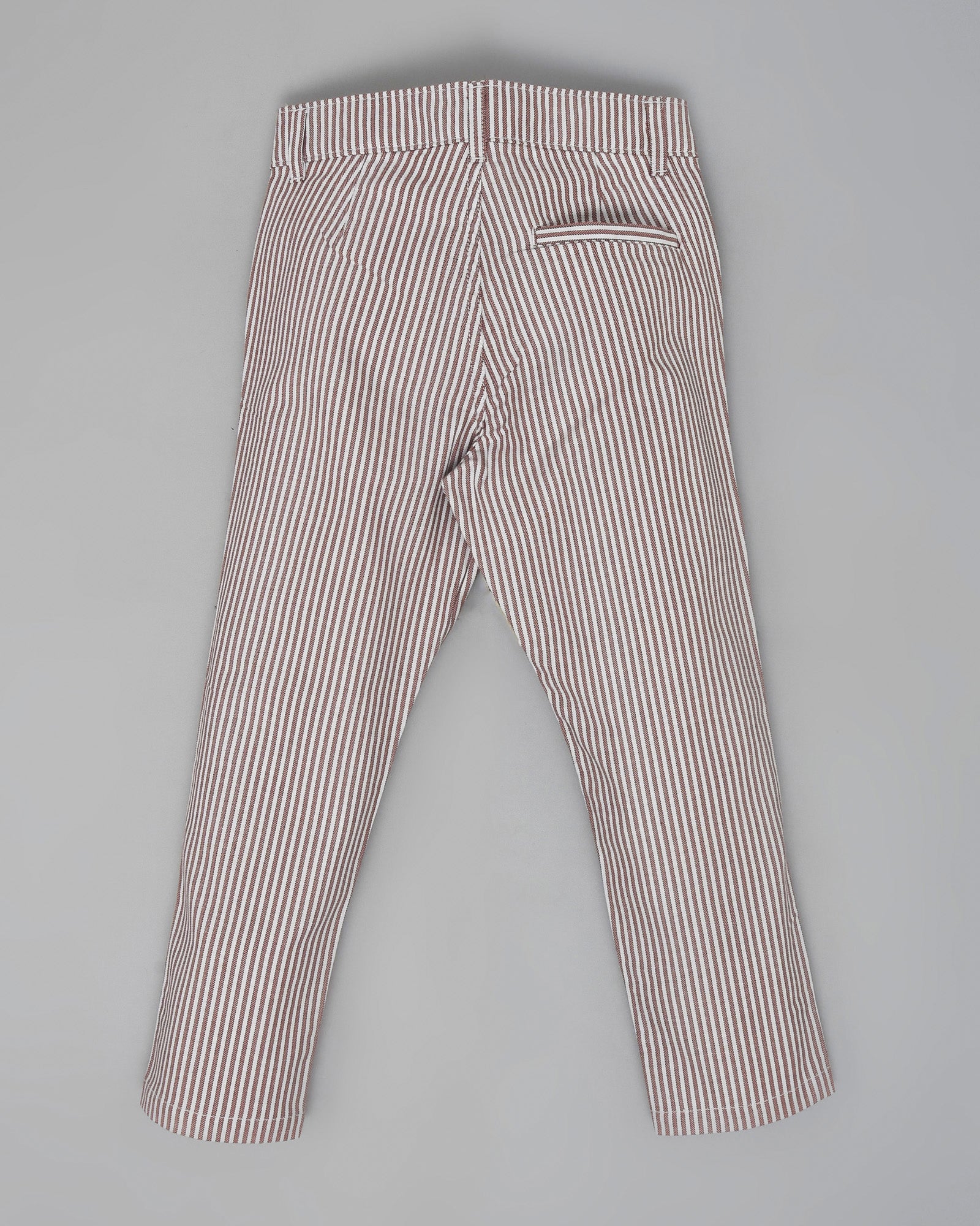 Youmaa Boys -100% Cotton Textured Chinos -Fixed Waist Band - Elasticated -Pockets -RegularLength- Fit- Micro Fibre Cloud Wash Softness-Brown