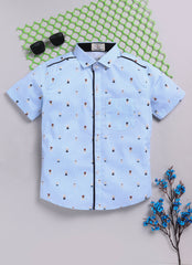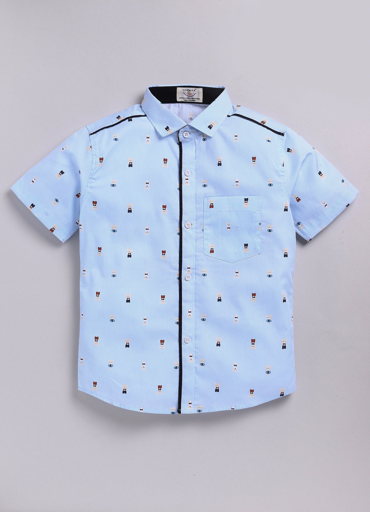 Youmaa Boys Half Sleeves - Shirt With Aop - Blue