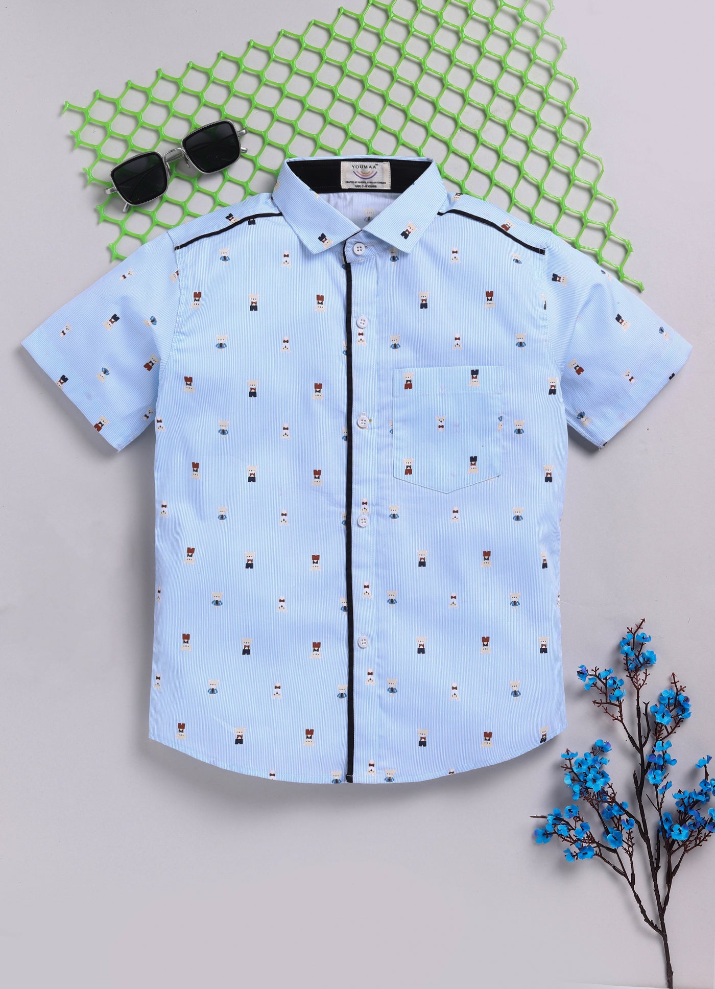 Let your little ones rock in style with YOUMAA Boys Half Sleeves Shirt featuring an all-over print. Crafted from 100% cotton, it offers utmost comfort for your kids to play and move freely. With half sleeves, it's perfect for warmer days or layering under jackets.