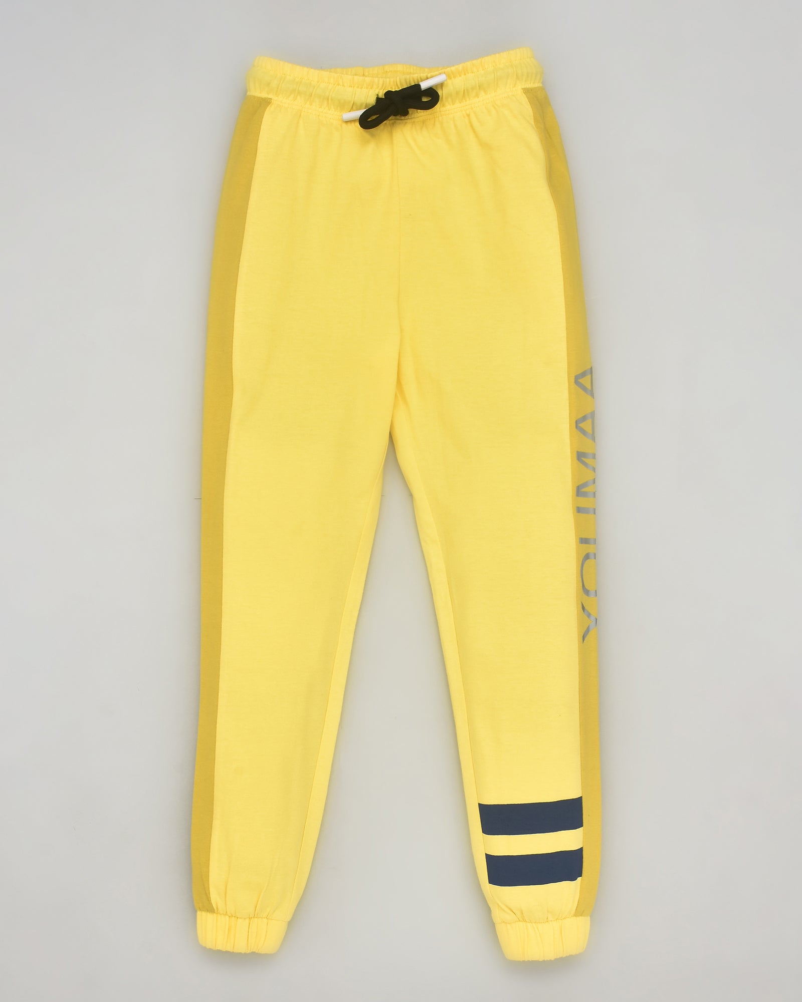 Youmaa-Boys-Joggers-Full Length-Side Print -Elasticated-DrawStrings -Regular Length- in 100% Soft Knit Cotton -Cloud Touch Micro Fibre-All Season Comfortable -Yellow