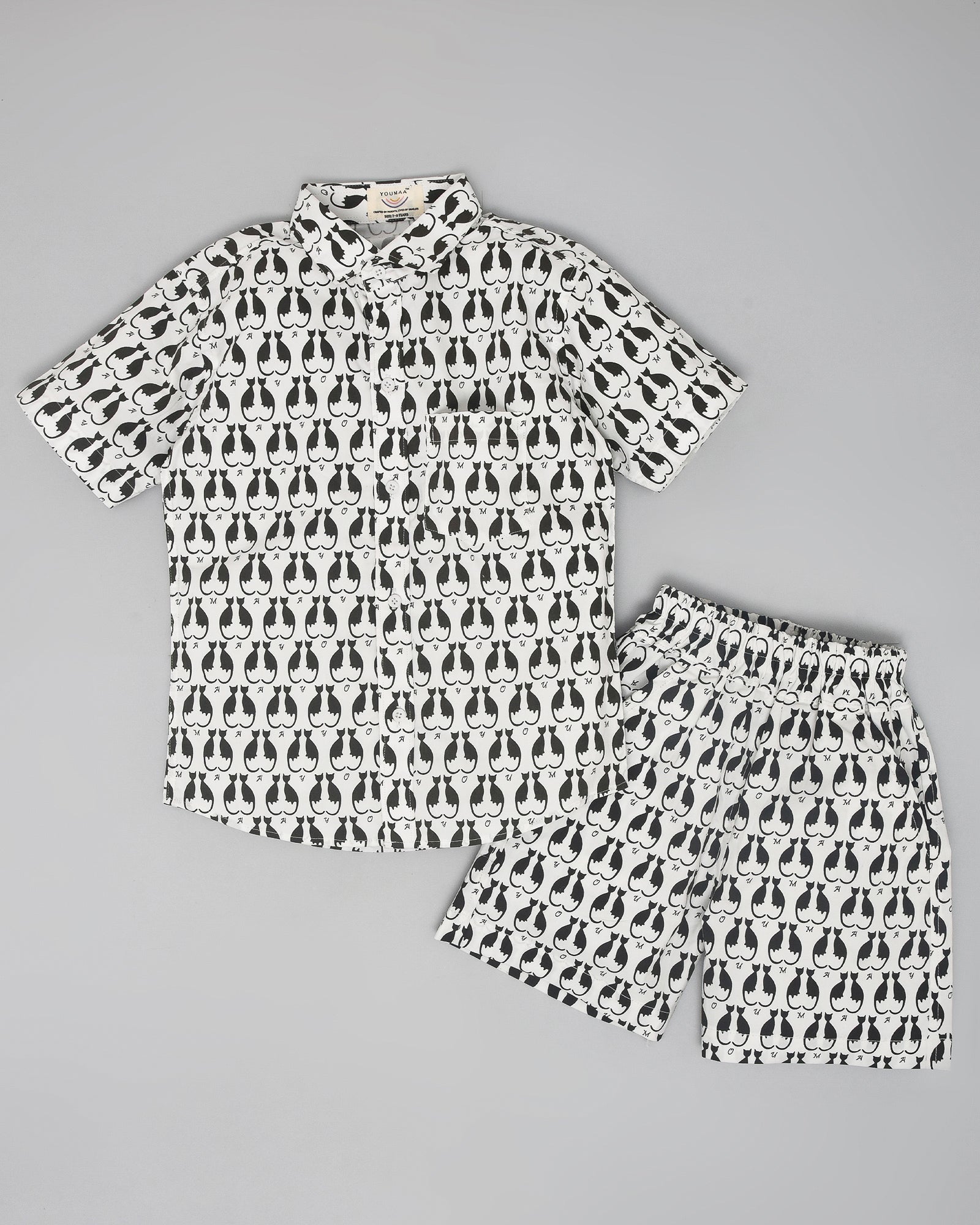 Youmaa-Boys-Printed Cord Set-Collar-Half Sleeves-Twining Shorts -2pc Set-Cotton
