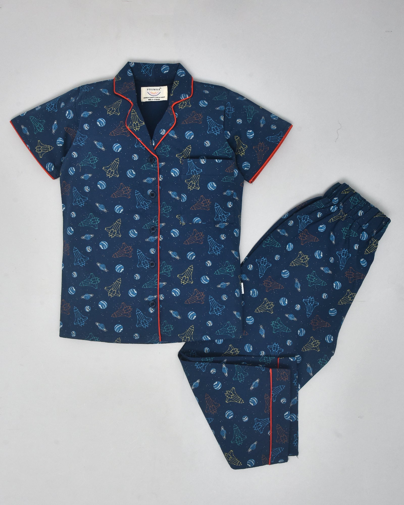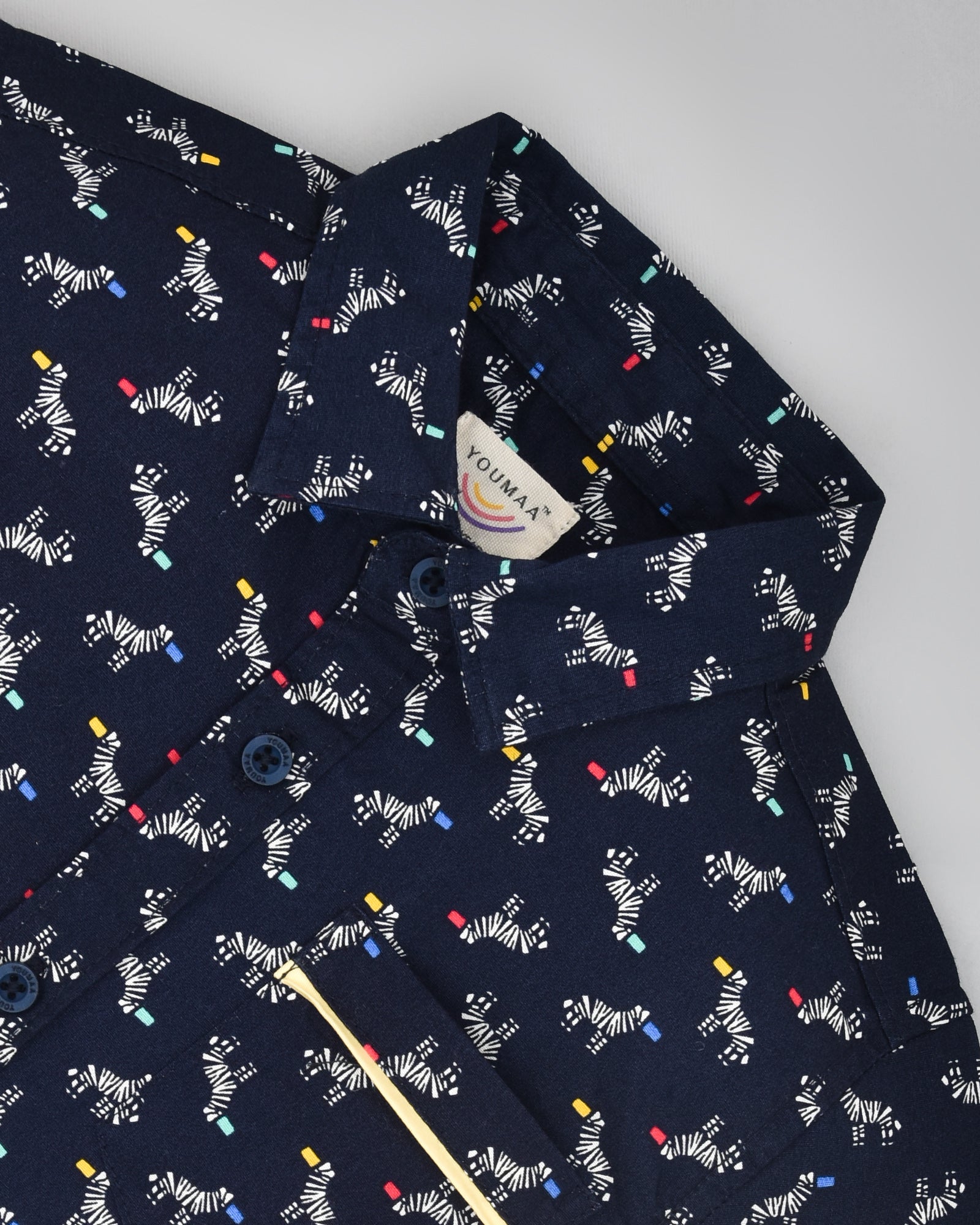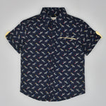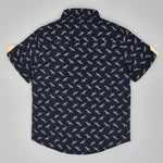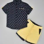 Youmaa-Boys-Printed Cord Set-Collar-Half Sleeves-Yellow Shorts -Pocket Detail-2pc Set-Cotton-Royal Blue