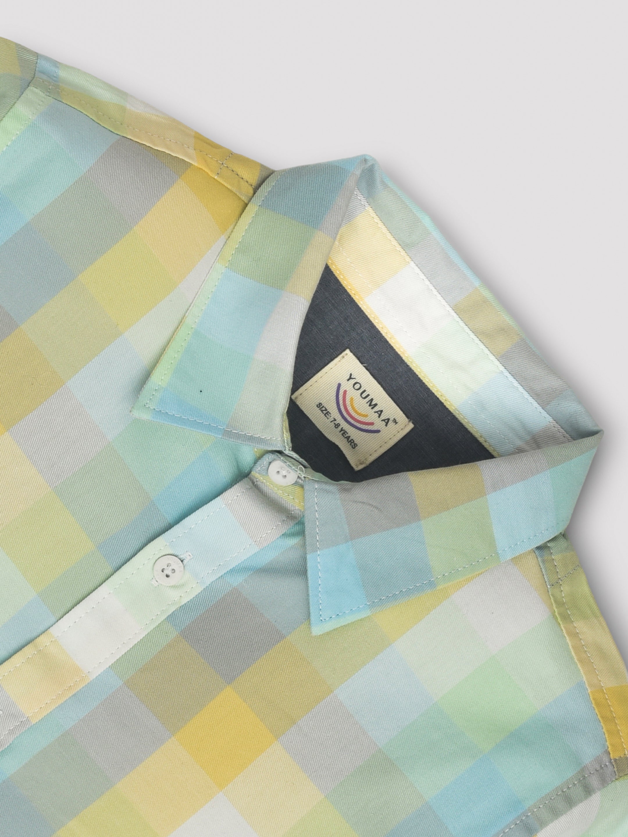 Youmaa 100% Cotton Fall Sleeve Checked Collared Shirt Multi Green