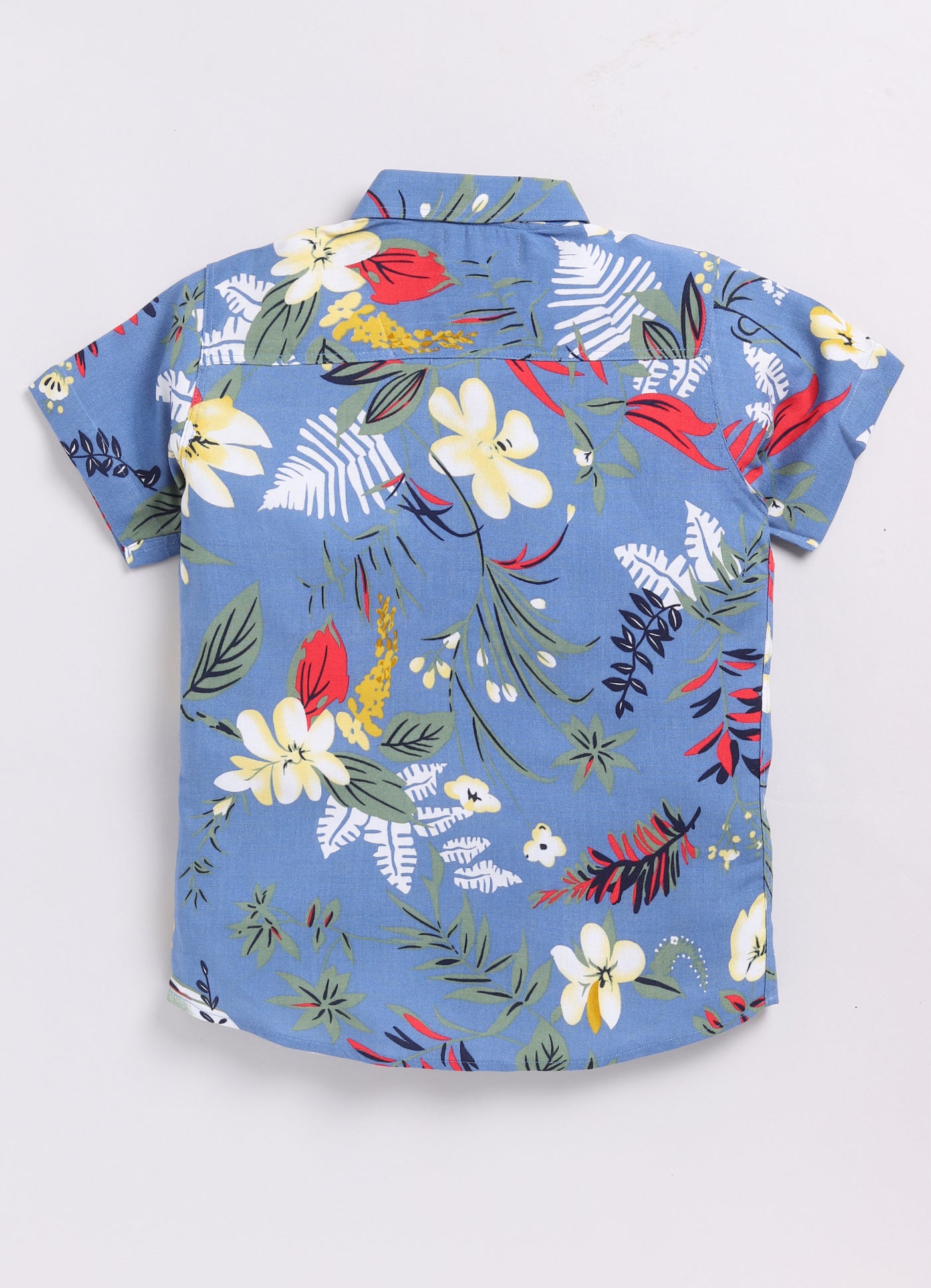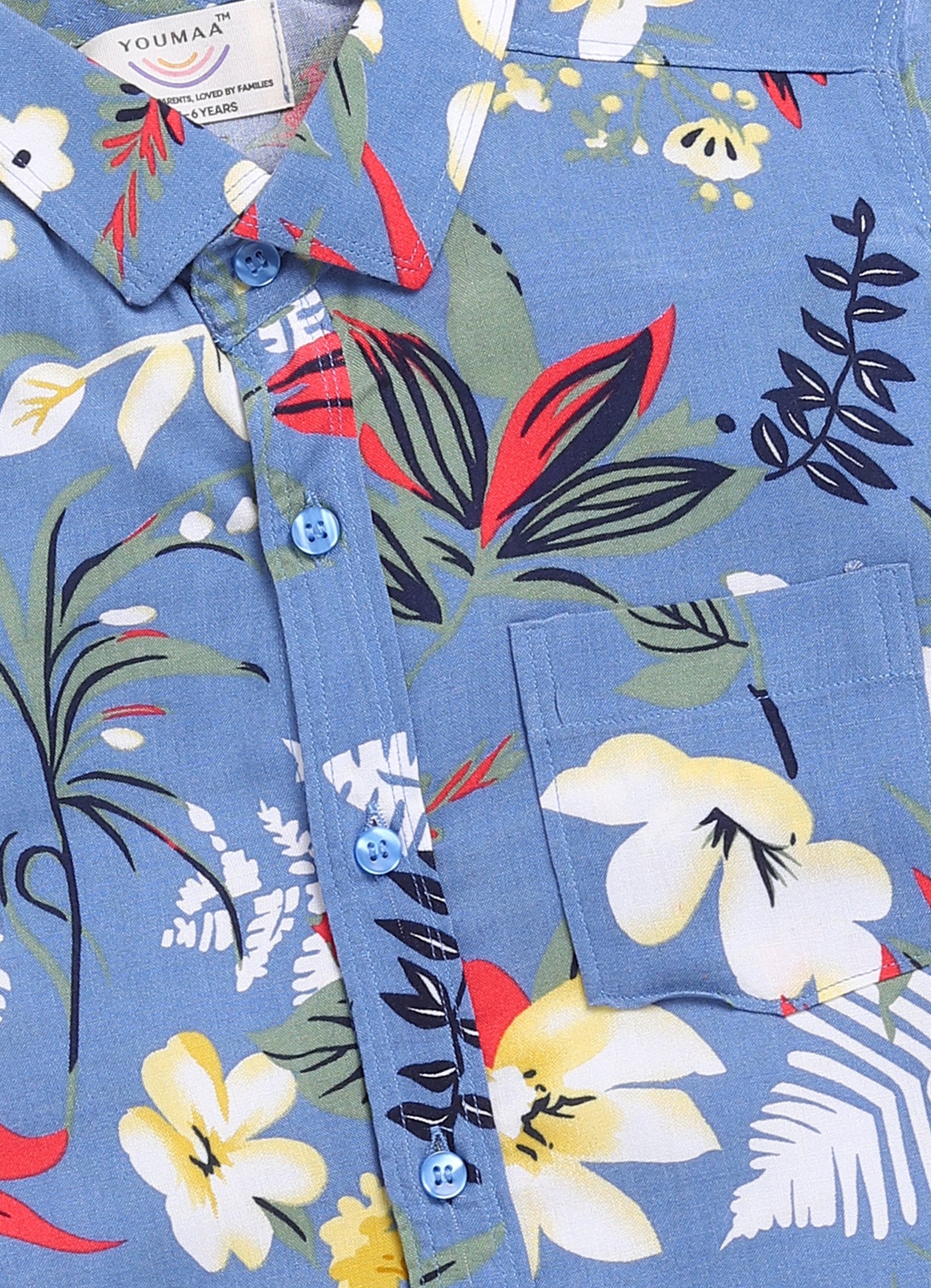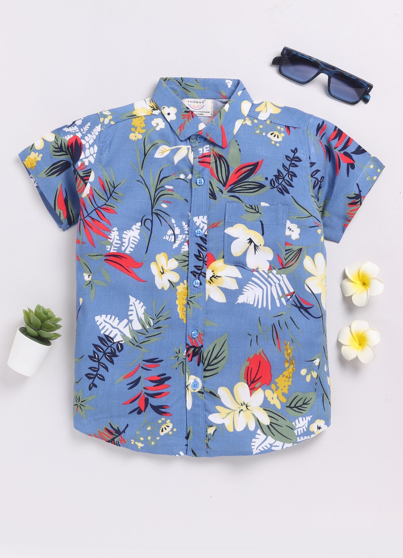 Youmaa 100% Cotton Half Sleeve Hawaiian Vacation Colorful Floral Printed Collared Shirt Royal Blue