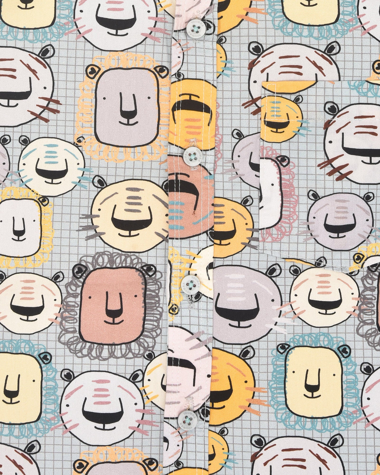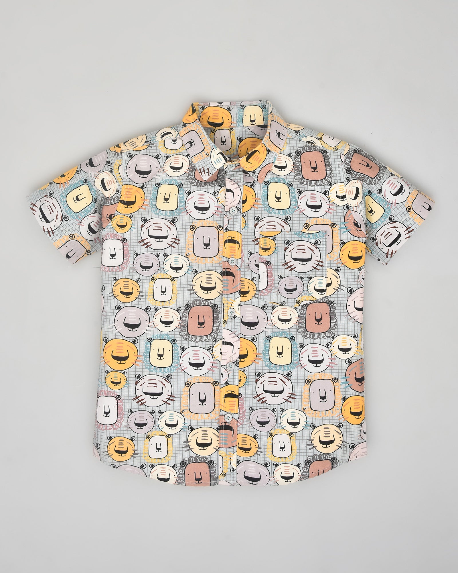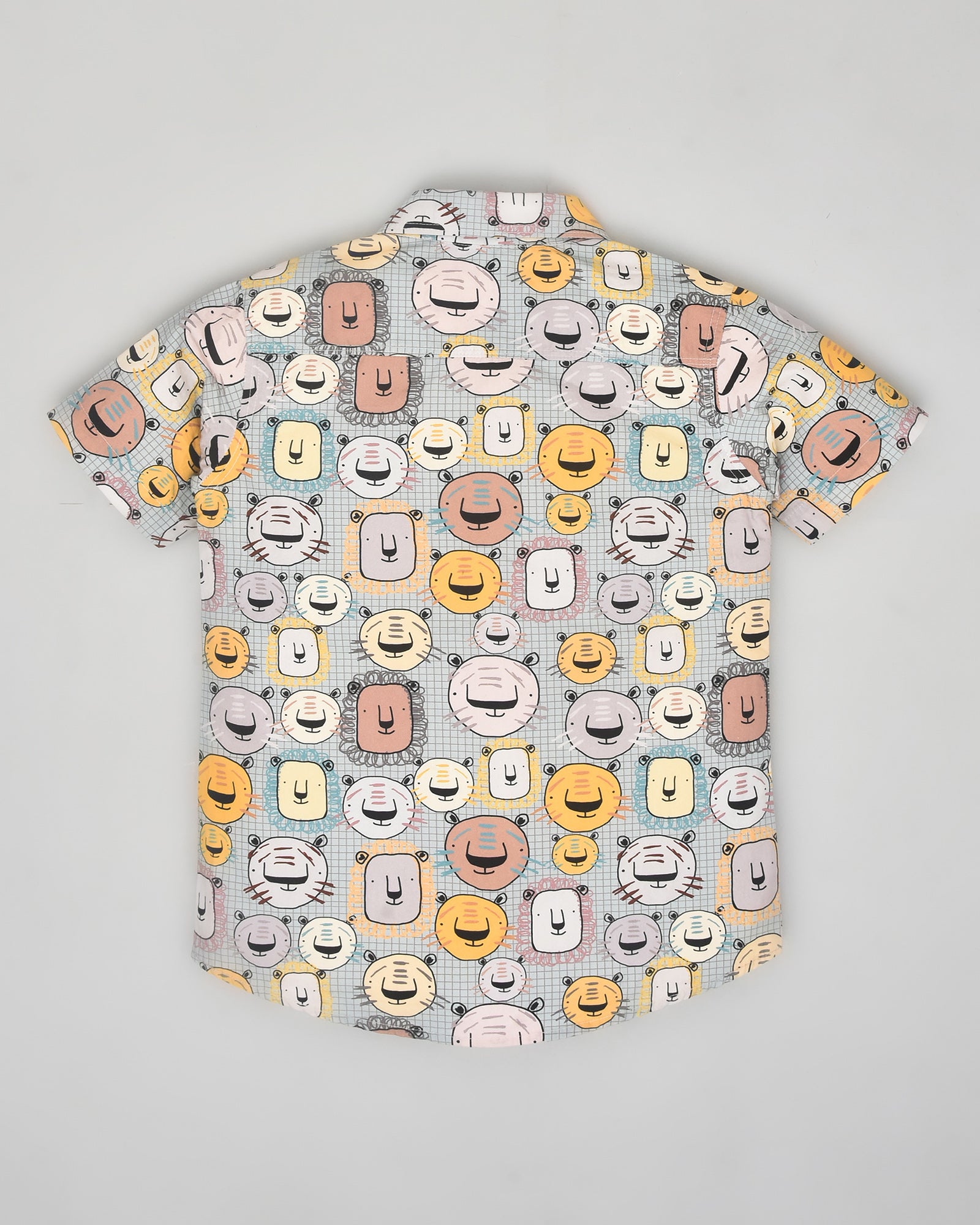 Youmaa 100% Cotton Half Sleeve Smiling Vacation Printed Collared Shirt Grey