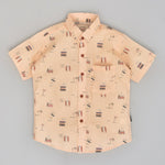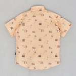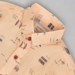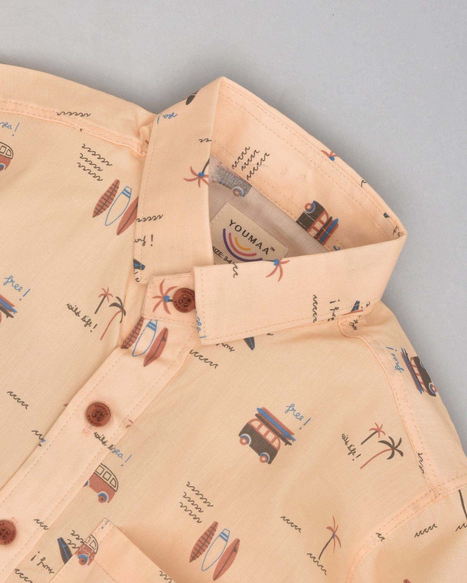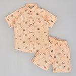 Youmaa Cotton Half Sleeves Beach Theme Printed Shirt & Shorts - Peach
