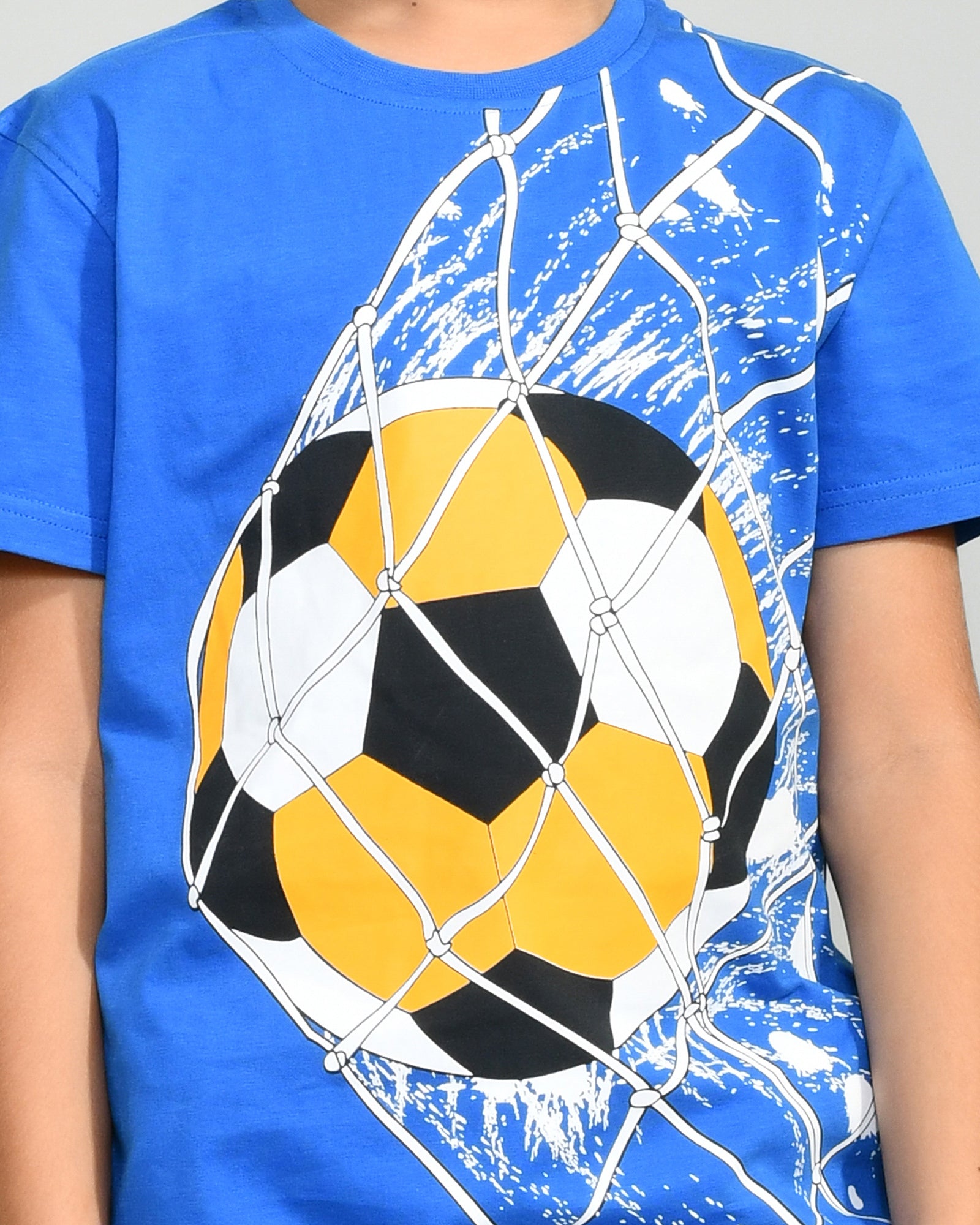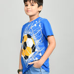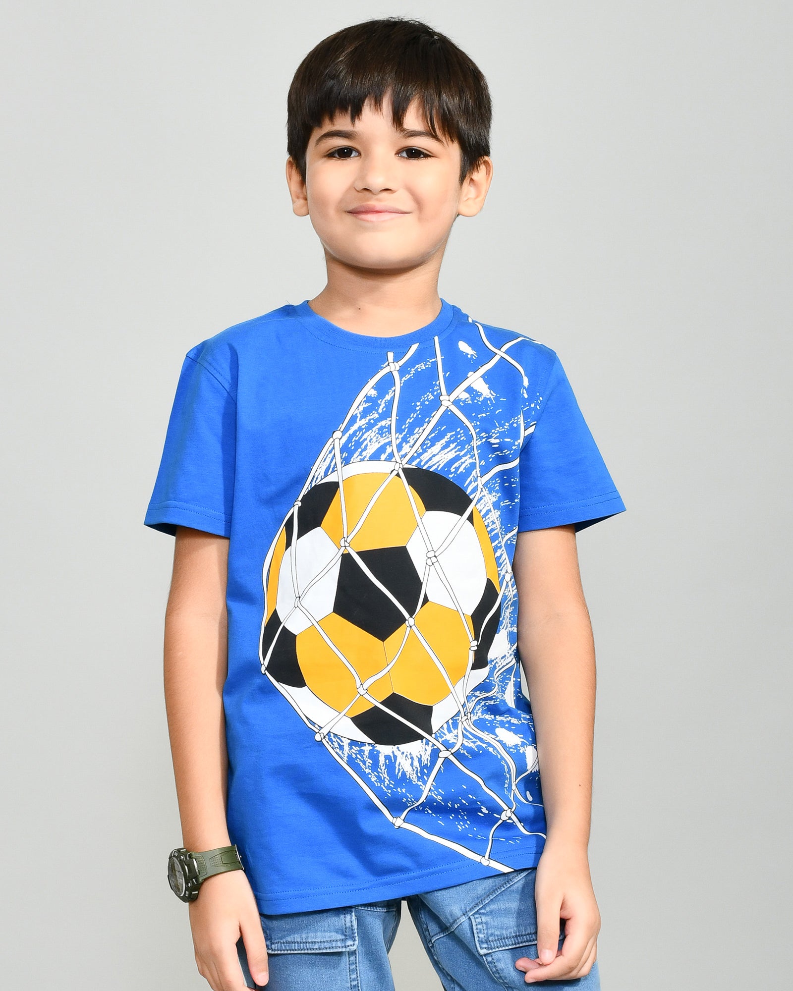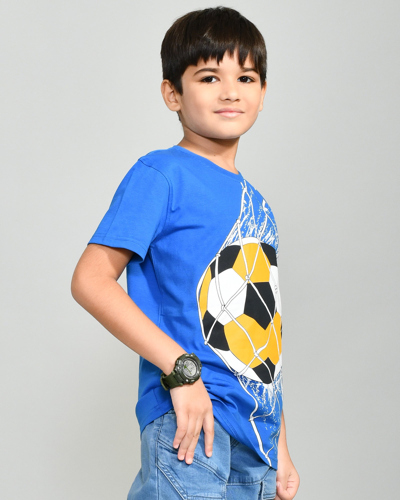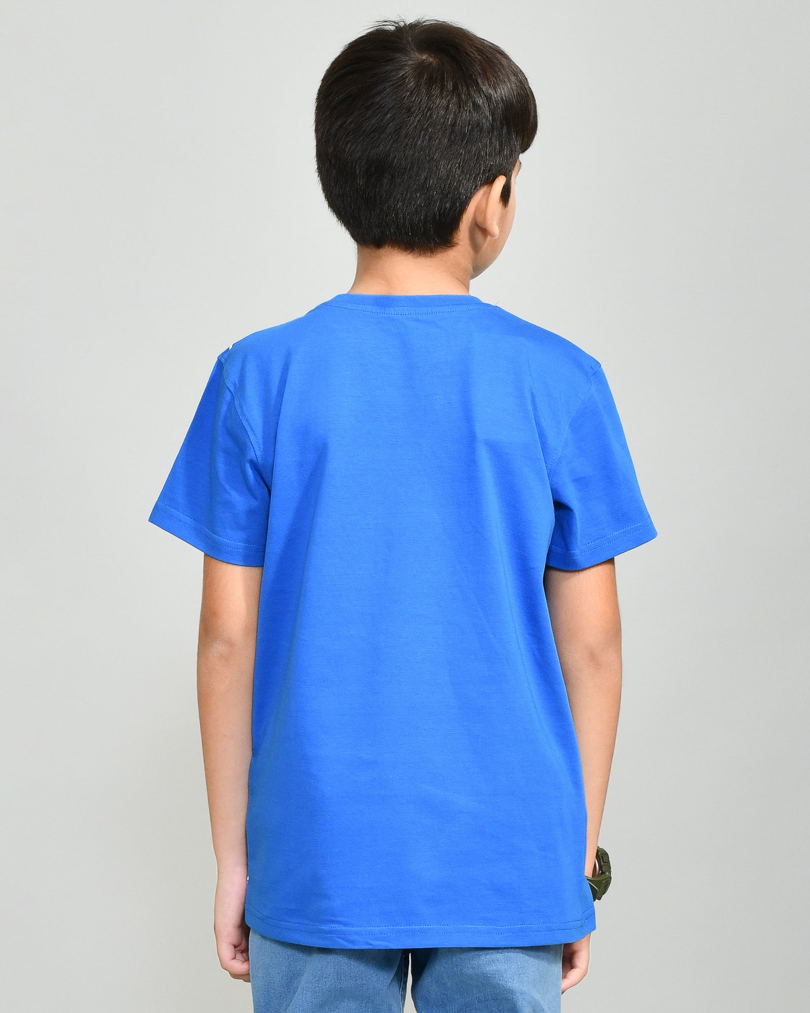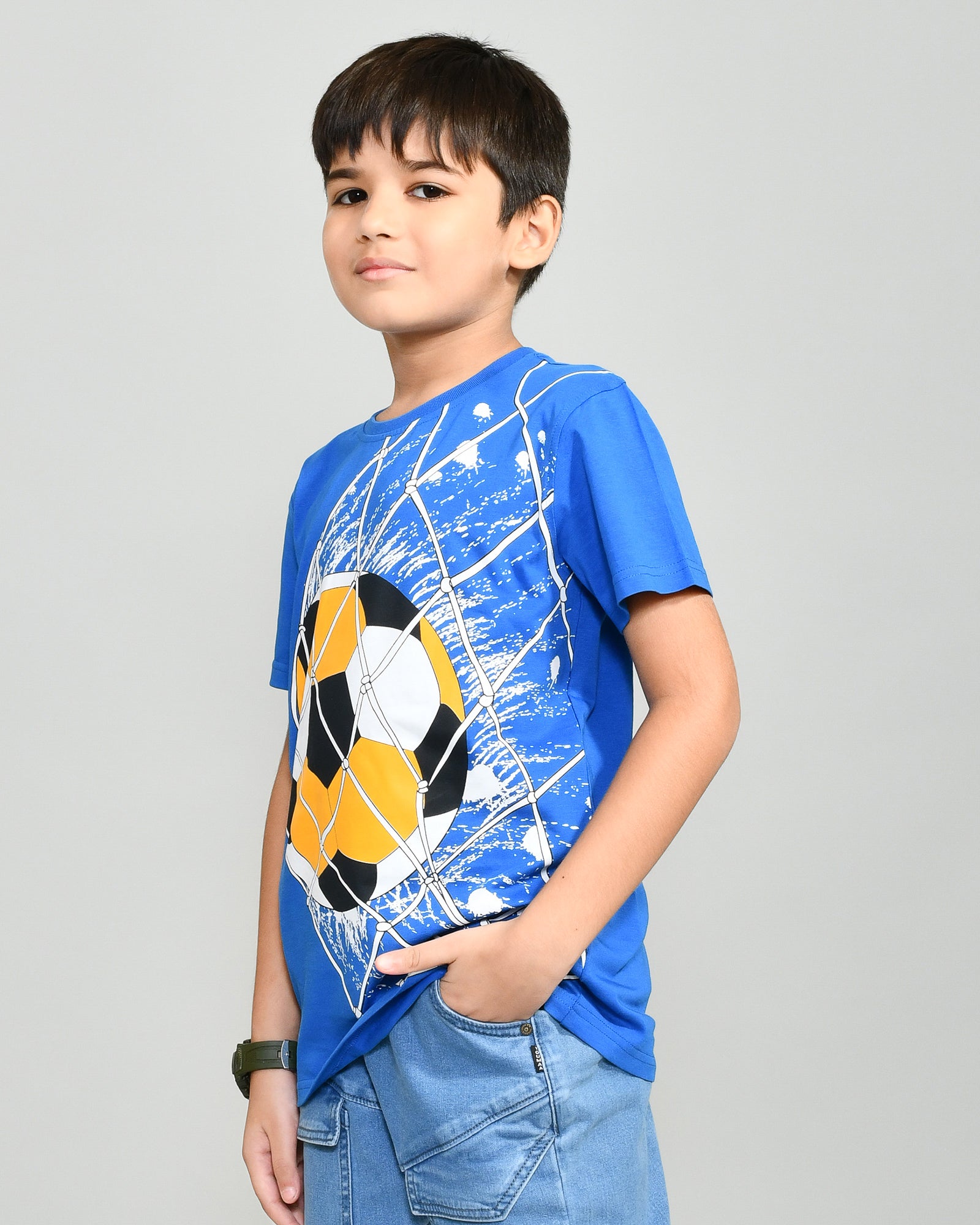 Youmaa 100% Cotton Half Sleeves Round Neck Sports Printed T-Shirt Blue