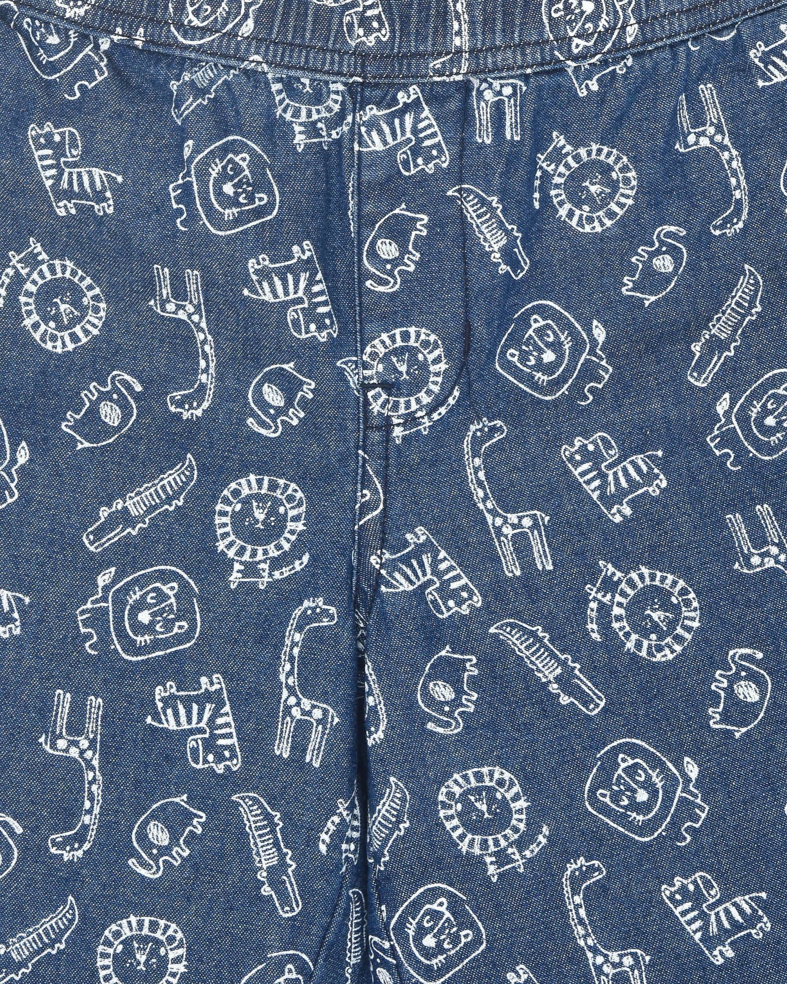 Youmaa-Loose Knee Length Shorts Denim Printed, Soft 100% Cotton - Blue