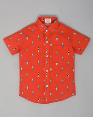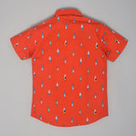 Youmaa Unique Print Half Sleeves Button Down Collared Shirt - Red