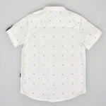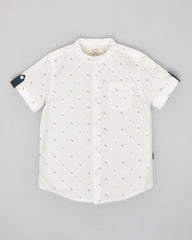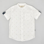 Youmaa- Navy Charm Printed Collar Shirt Half Sleeves Loops ,Soft 100% Cotton - White