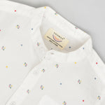 For a touch of sophistication in your little one's wardrobe, Youmaa presents this Navy Charm Printed Collar Shirt. Made from soft 100% cotton, it's a cozy and stylish choice for any occasion. Featuring a charming print and half sleeves with loops, this shirt adds a playful yet smart flair to your child's look. Crafted with care and comfort in mind, it's perfect for everyday wear.