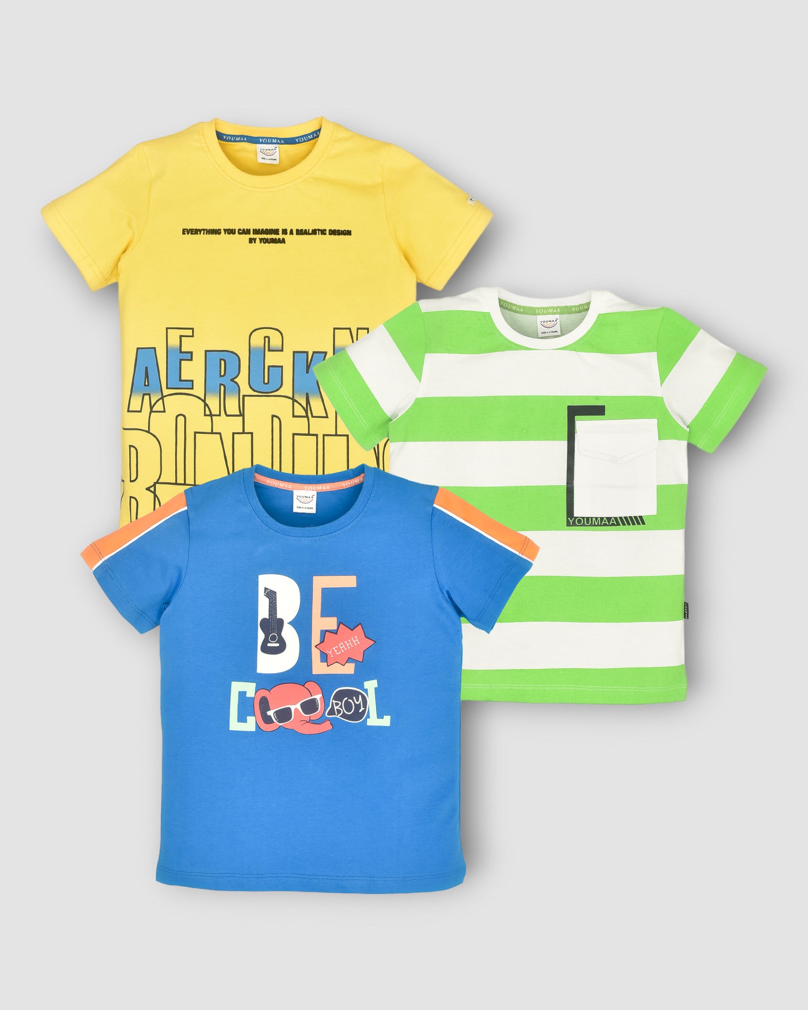 Great set of t-shirts! The fabric is soft and gentle on my child's skin, and the designs are fun and playful. Will be buying more from Youmaa!