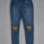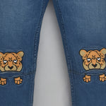 Youmaa Unisex Light Washed Tiger Detailed Joggers - Blue