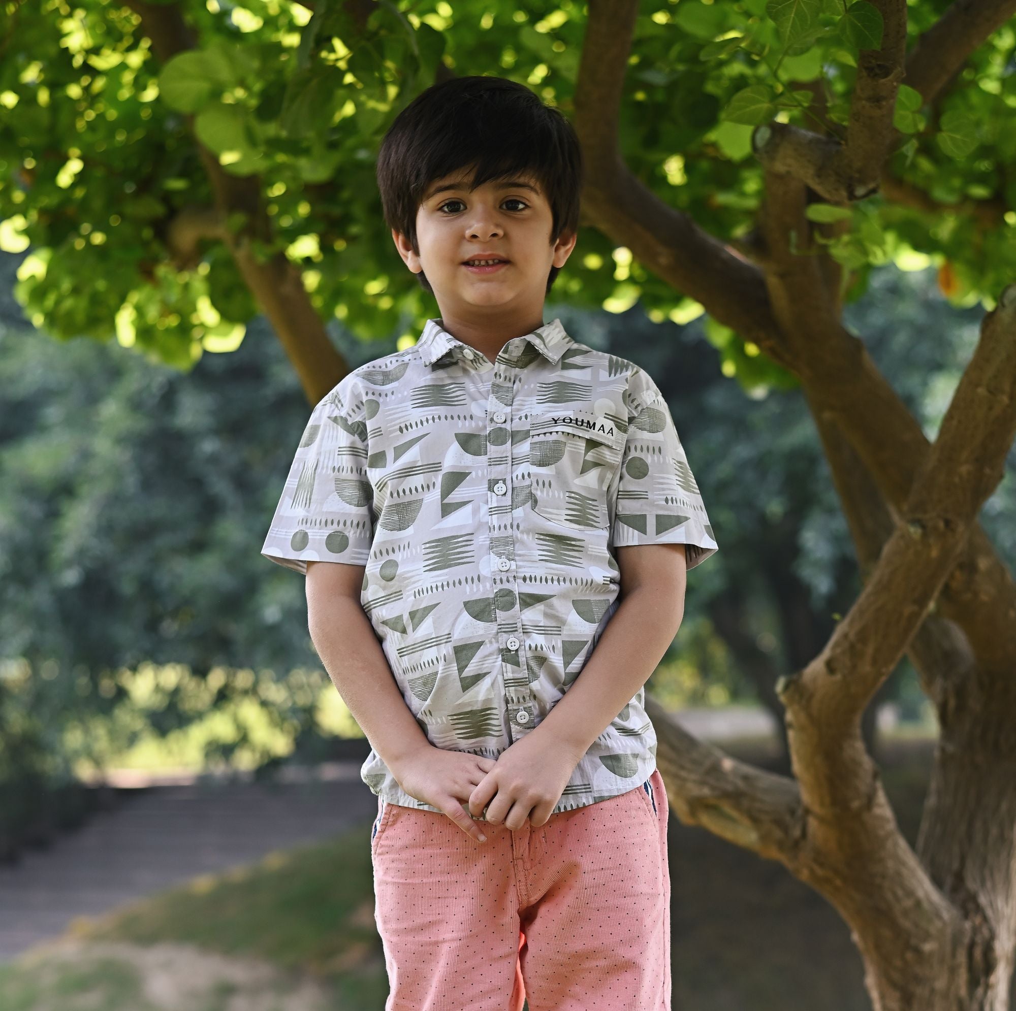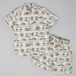 Youmaa-Vacation Print Collared Shirt and Shorts -Coordinate Set ,Soft 100% Cotton